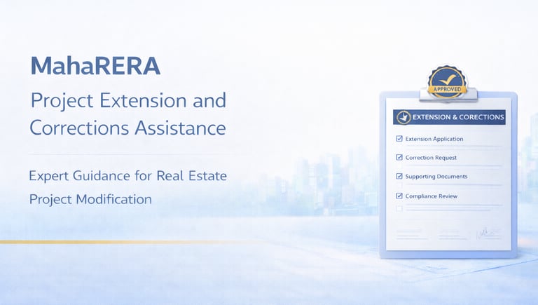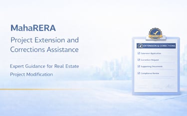 Under MahaRERA, every registered real estate project has a defined completion timeline and approved set of details. When projects require additional time for completion or any rectification of registered information, promoters must formally apply for Project Extension and Correction through the MahaRERA portal. Timely extensions help prevent the project from lapsing, avoid penalties, and ensure that sales and marketing activities remain compliant with the law.