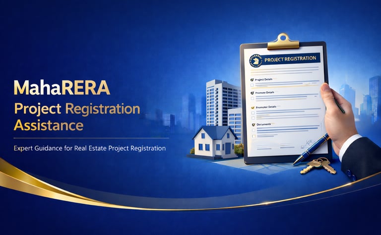 End-to-end support in registering real estate projects under RERA, including documentation and approval follow-ups.
